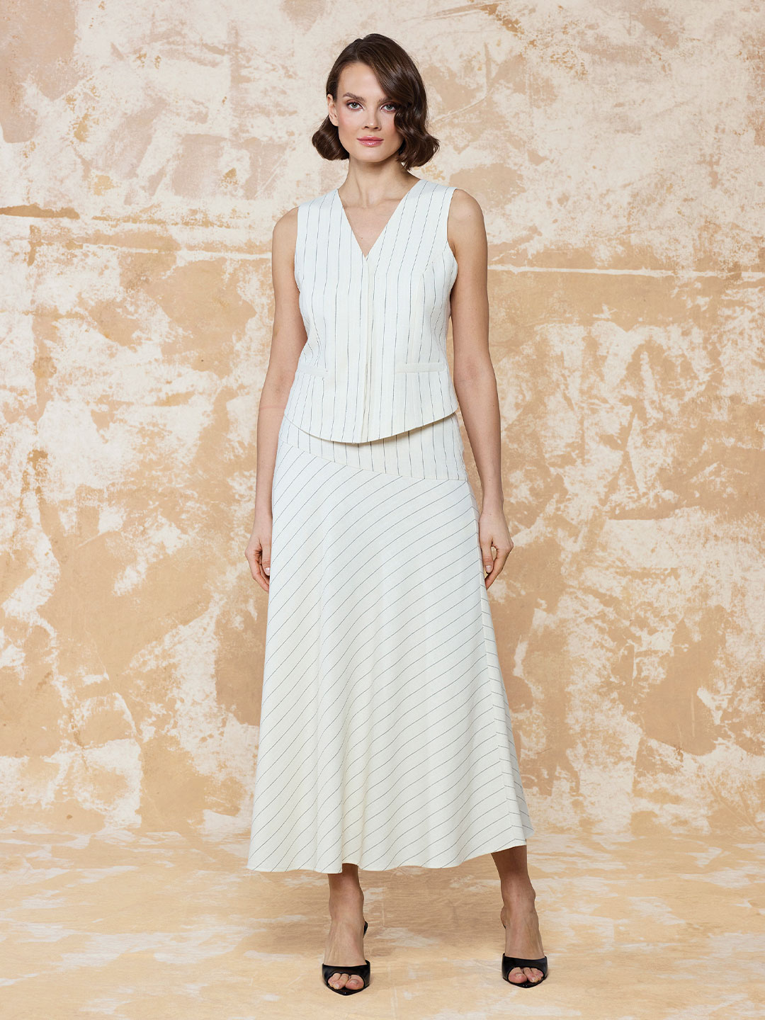 ÇİZGİLİ KETEN KUMAŞ YELEK
