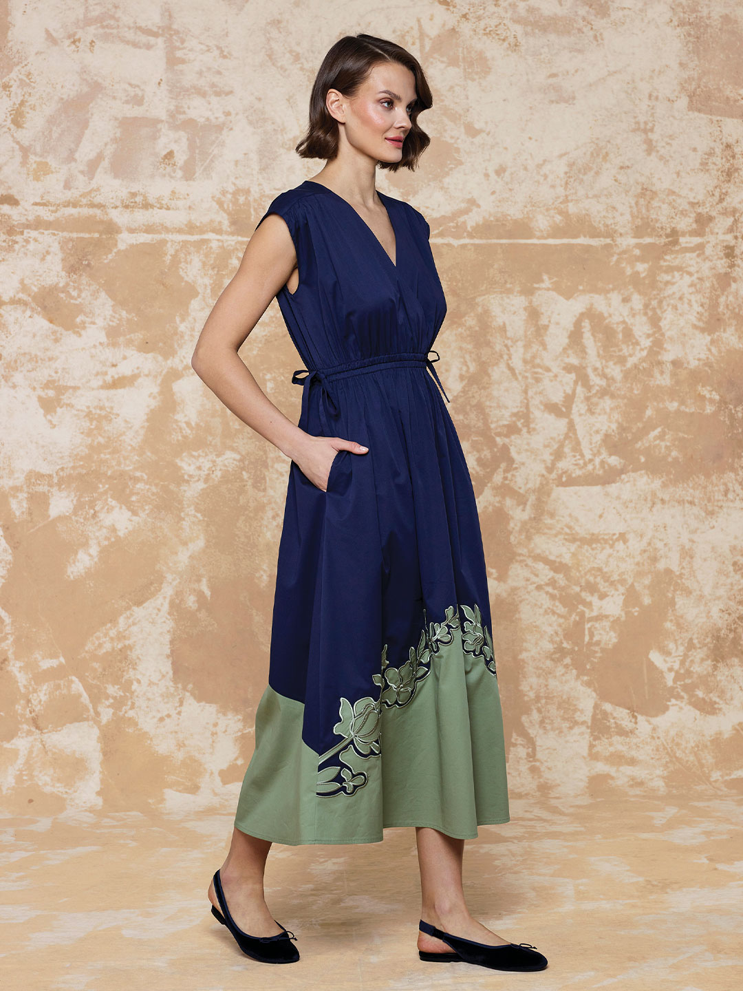COTTON KUMAŞ ETEK UCU NAKIŞ DETAYLI ELBİSE