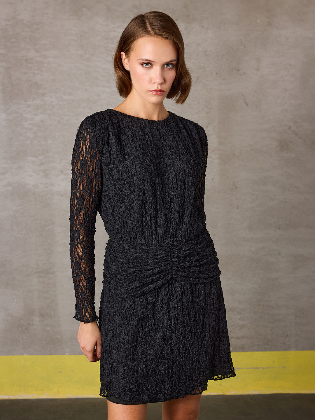 FLOŞ KUMAŞ KRUVAZE YAKA ELBİSE