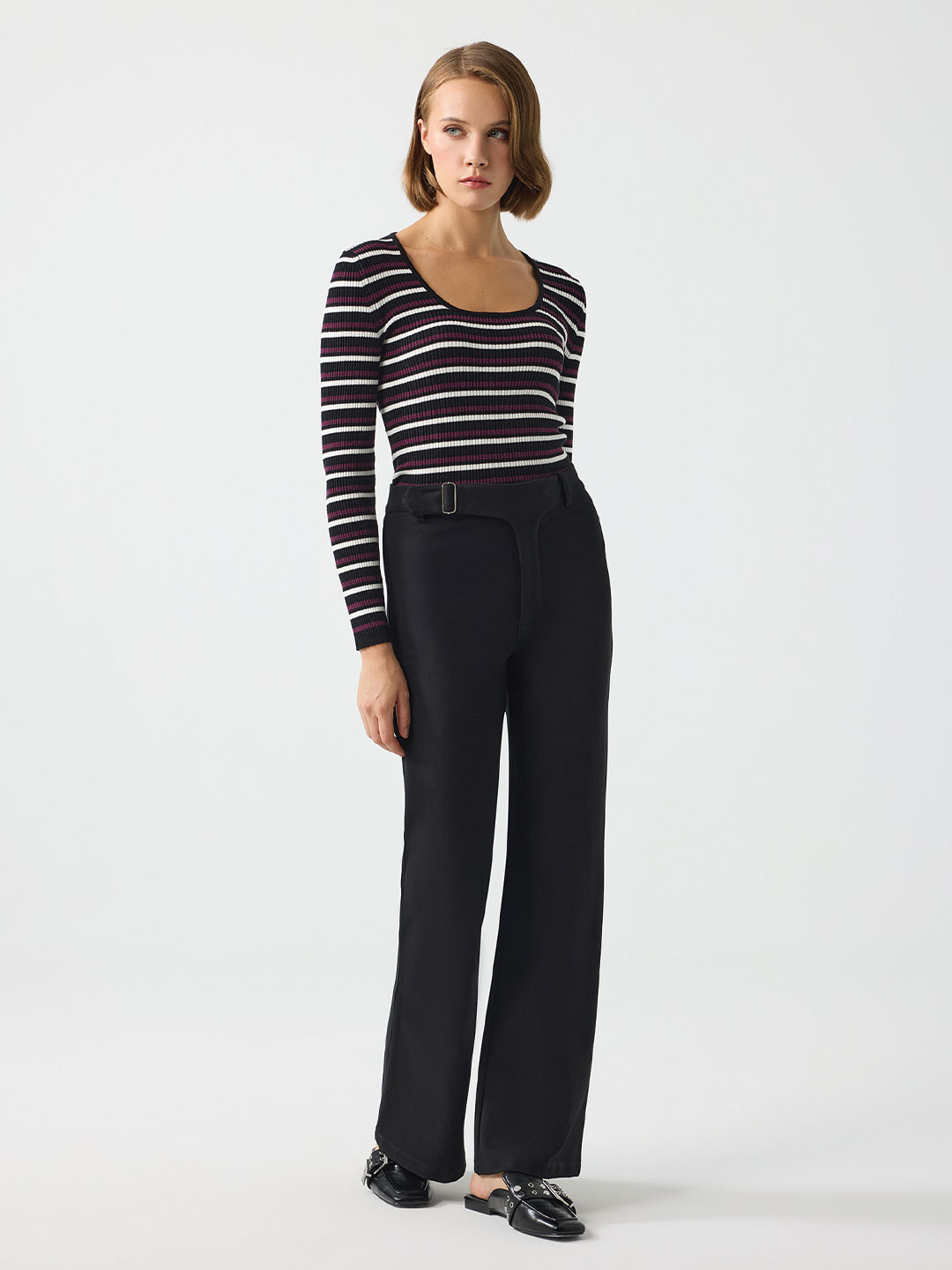 KARE YAKA ÇİZGİLİ TRİKO
