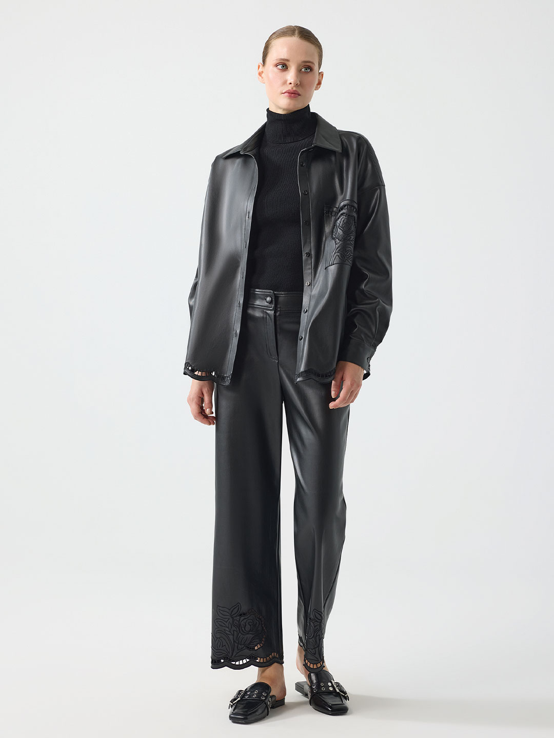 PAÇASI NAKIŞ DETAYLI DERİ PANTOLON