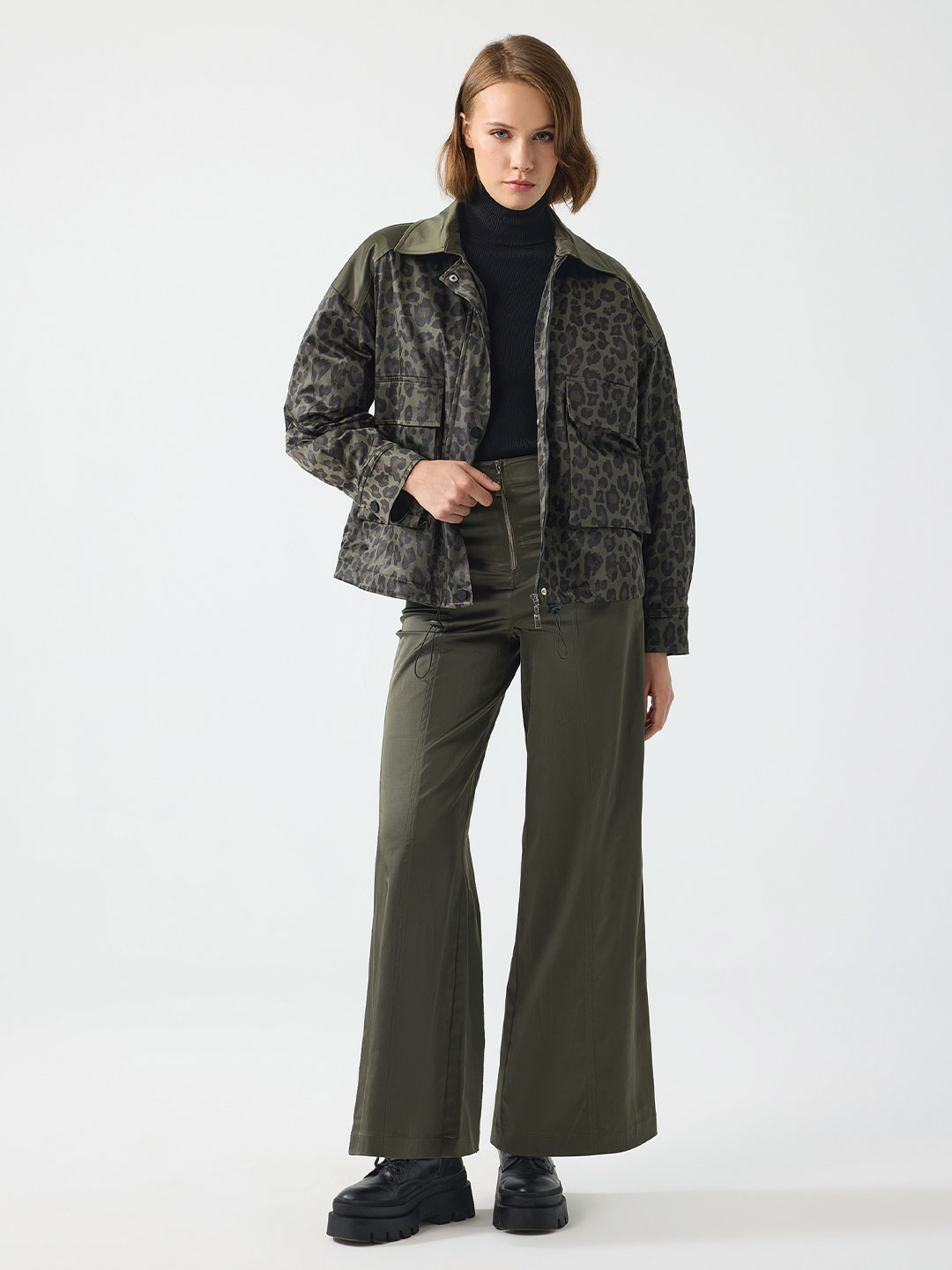 PARAŞÜT KUMAŞ LEOPAR DESENLİ KISA MONT
