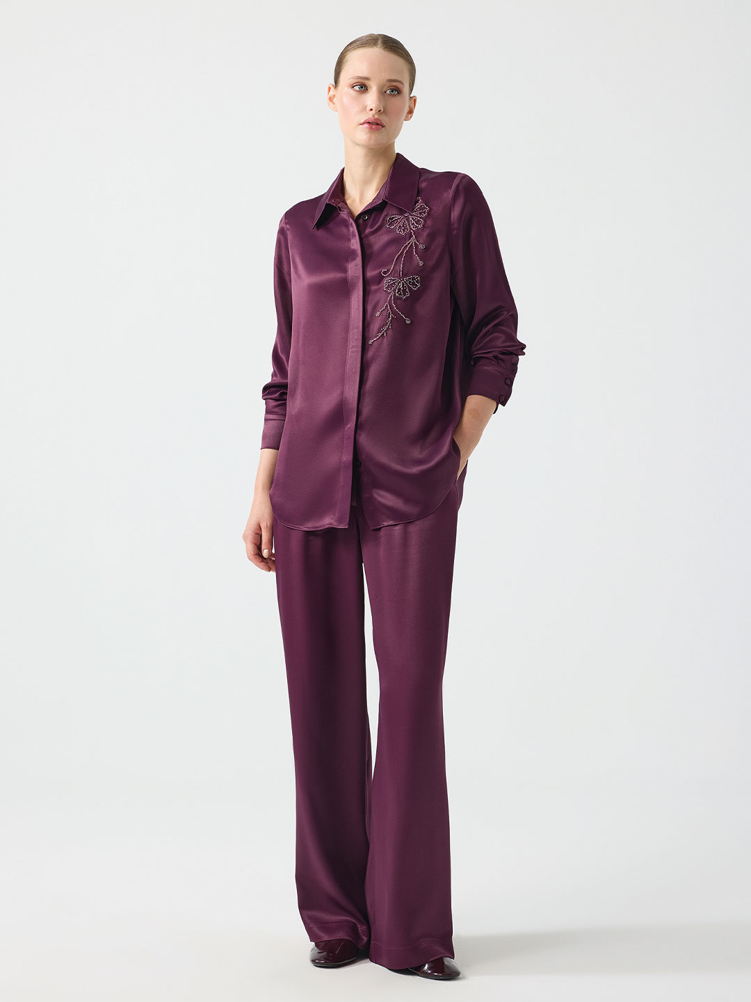 FLOŞ KUMAŞ NAKIŞ DETAYLI GÖMLEK