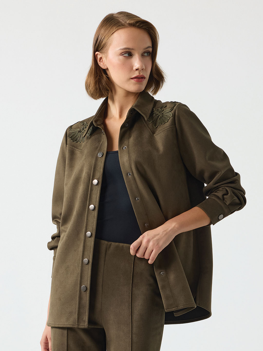 NAKIŞ DETAYLI SÜET GÖMLEK