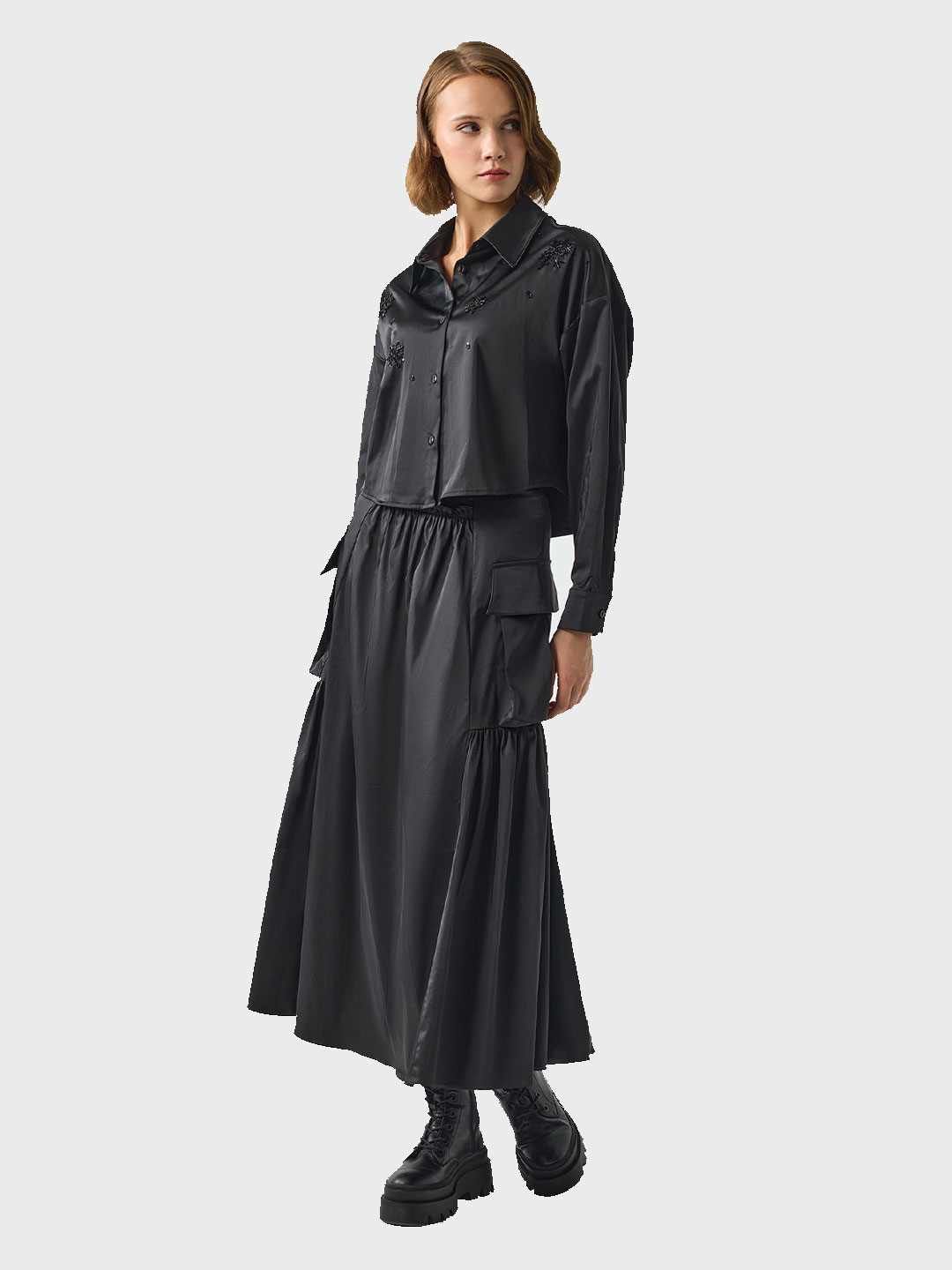 FLOŞ KUMAŞ NAKIŞ DETAYLI GÖMLEK