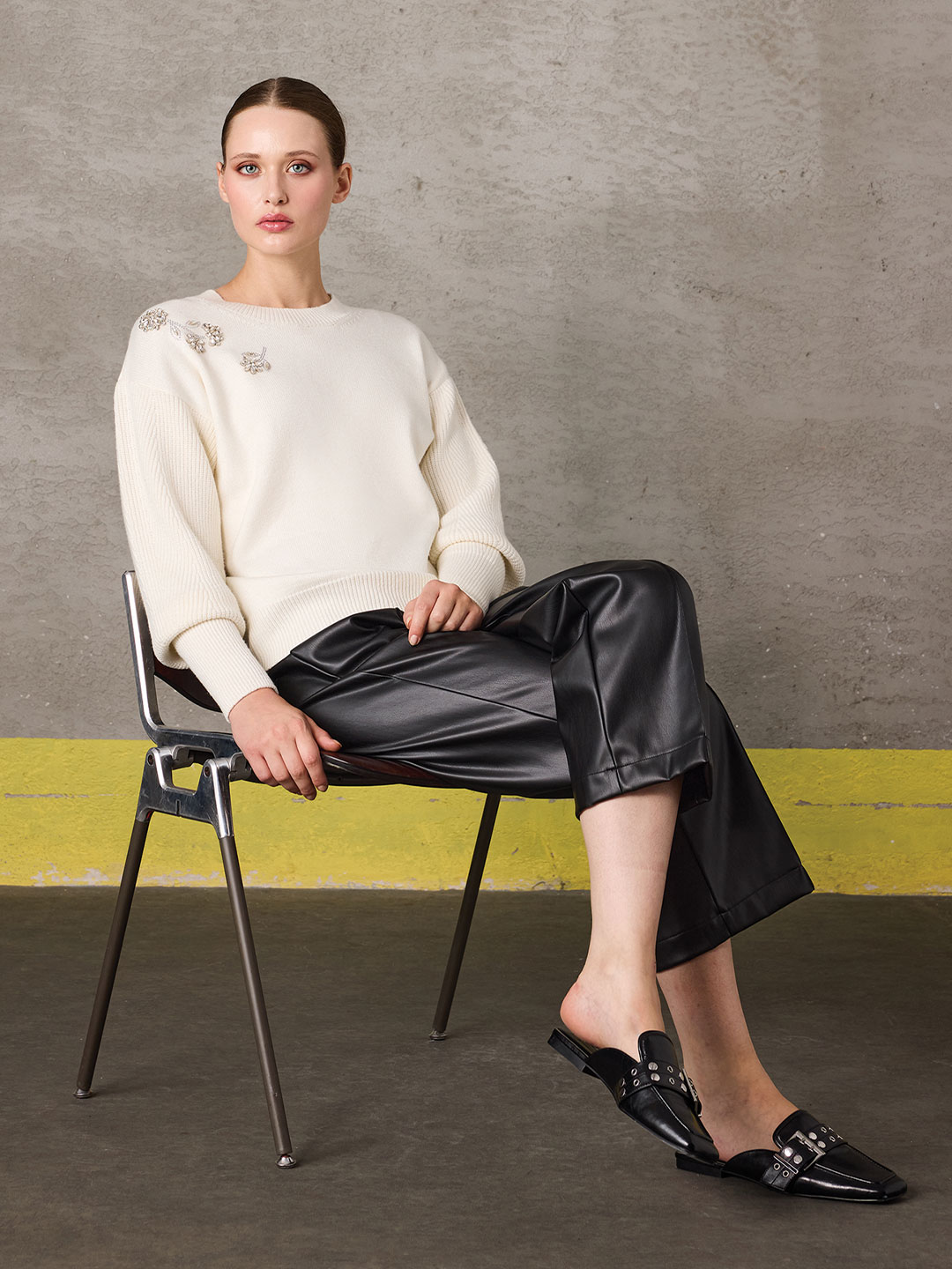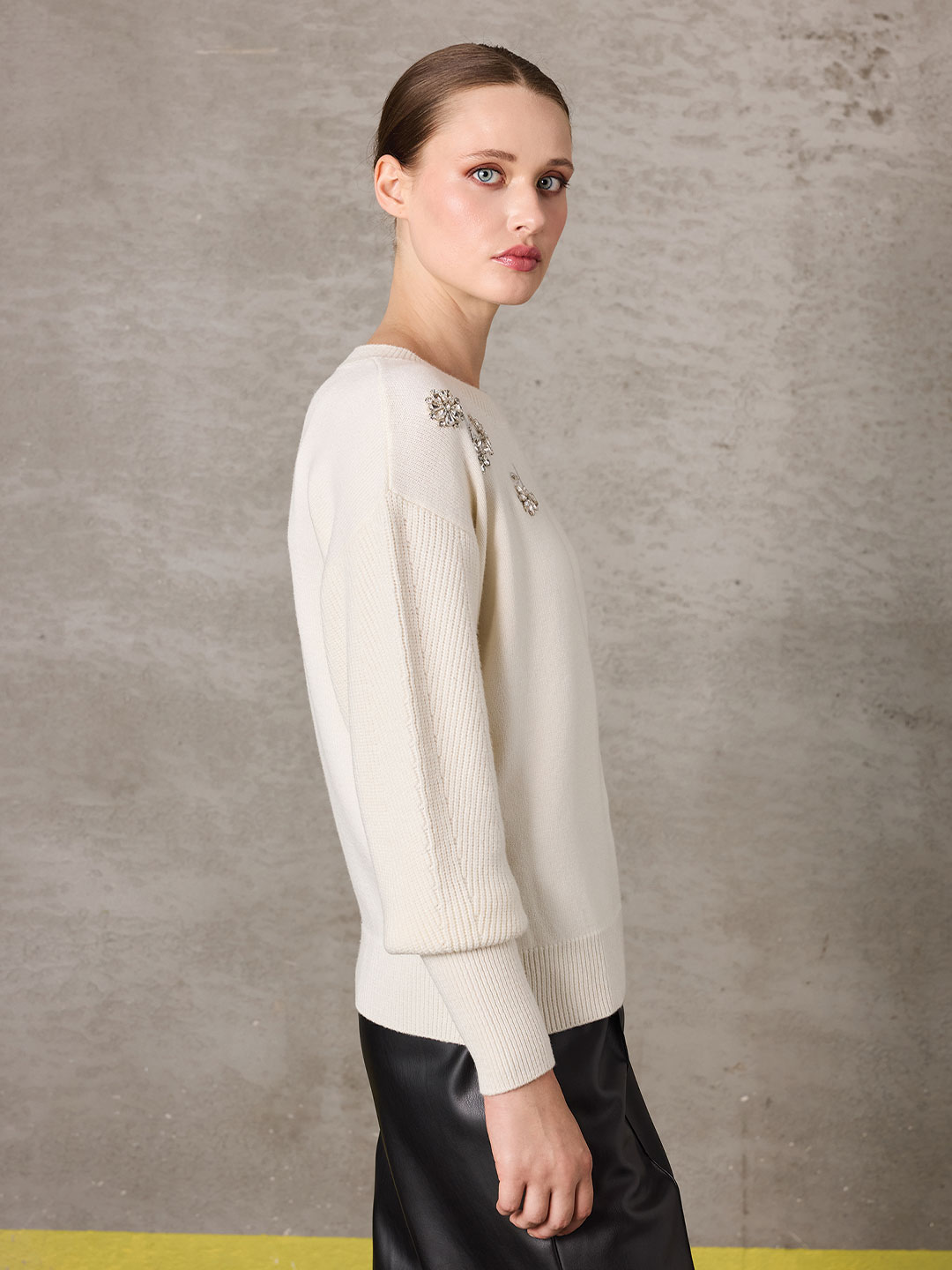 BİSİKLET YAKA TAŞ İŞLEMELİ TRİKO