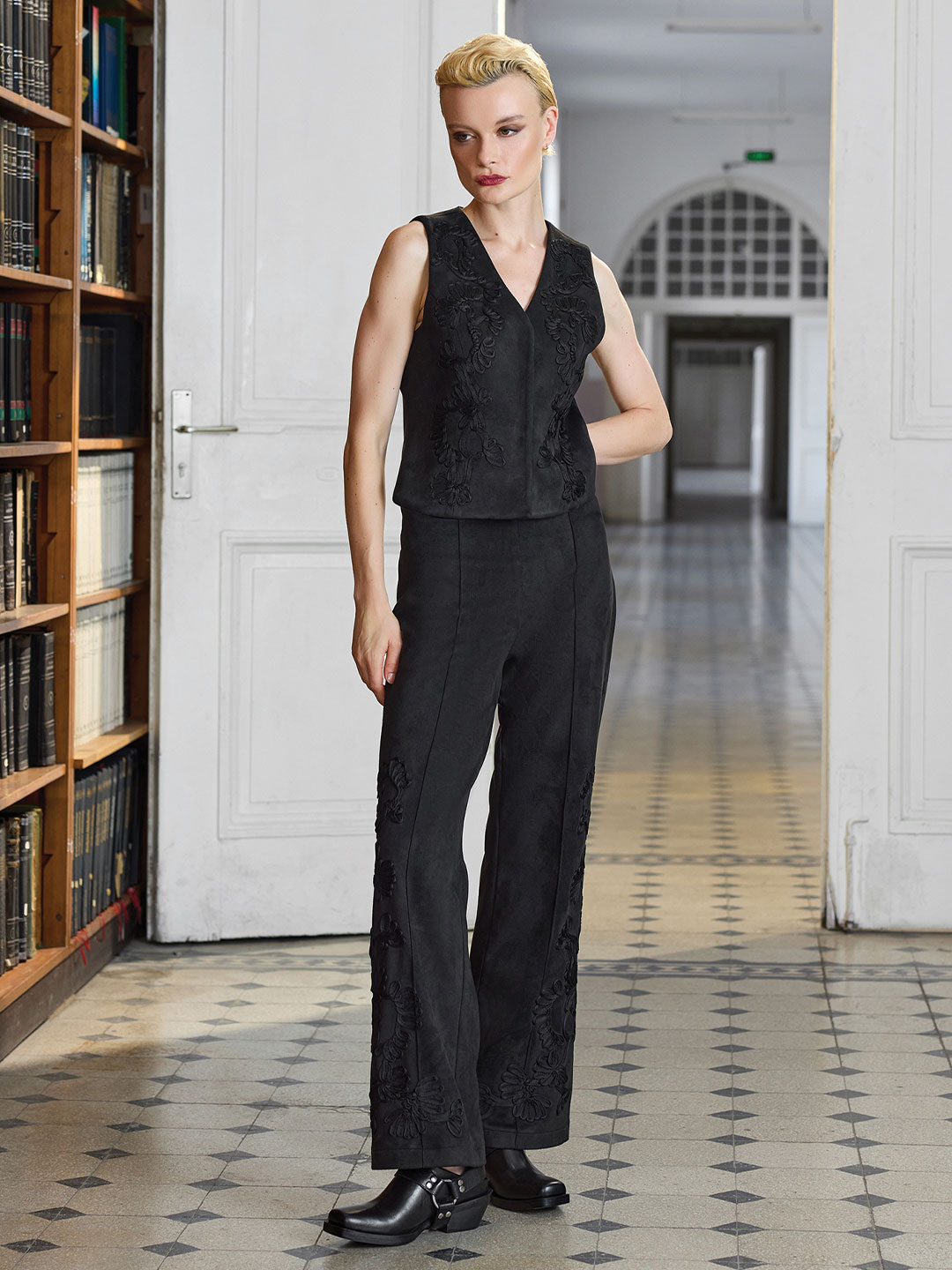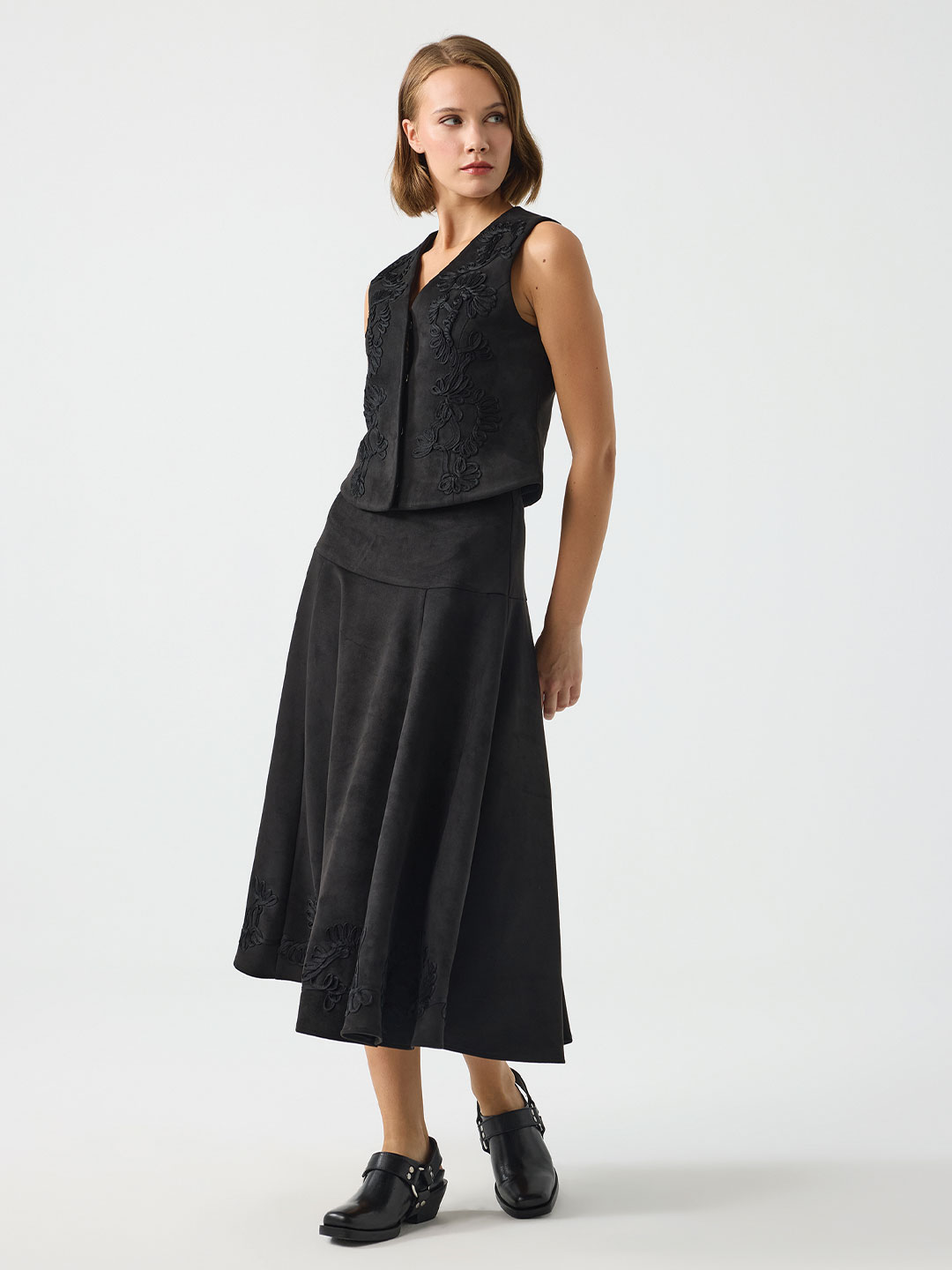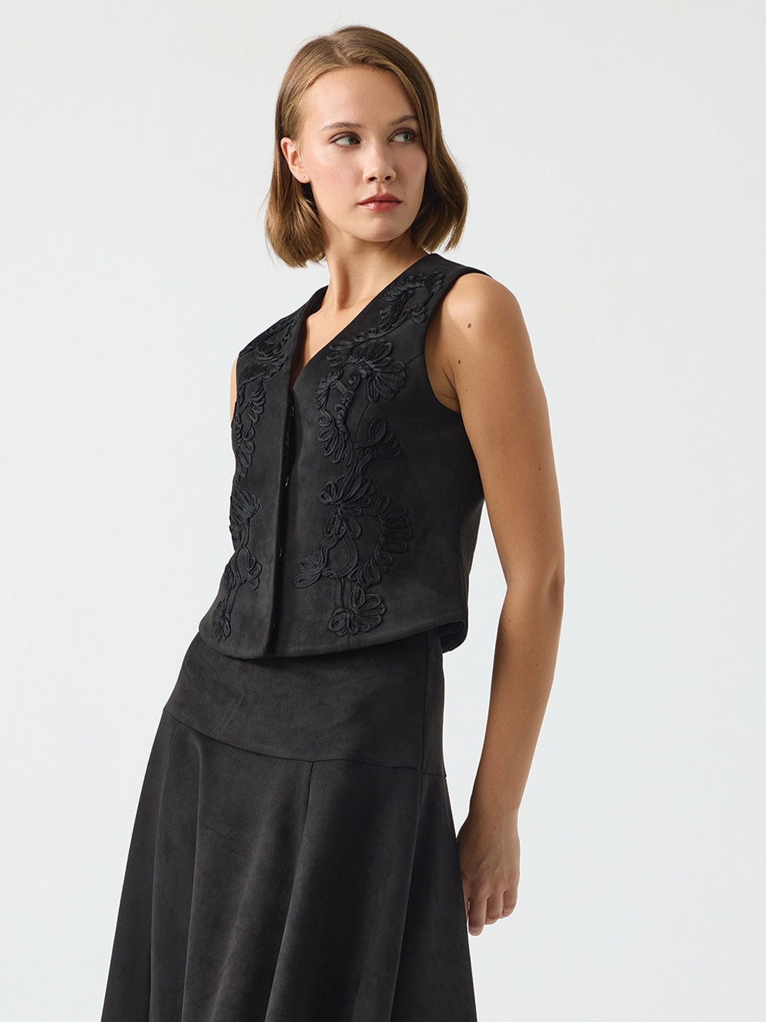NAKIŞ DETAYLI SÜET YELEK